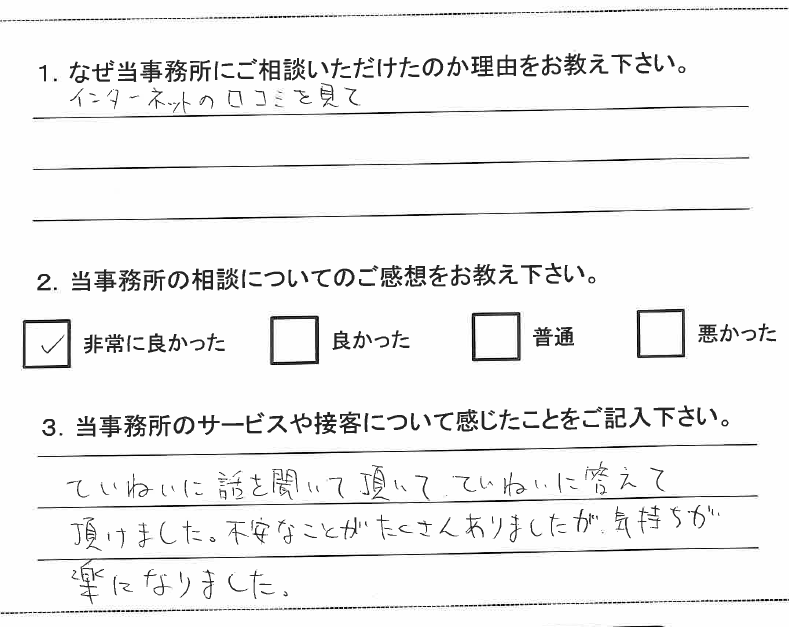 当事務所をご利用して頂きましたお客様から温かいメッセージを頂きました。