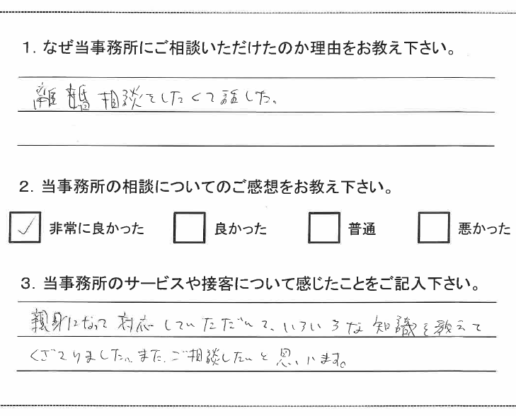 当事務所をご利用して頂きましたお客様から温かいメッセージを頂きました。
